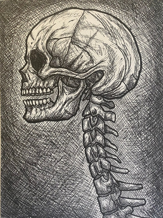 Realistic Portrait Of Skull And Cervical Spine Etsy